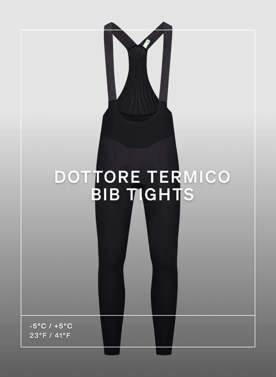 Our warmest bib tight, the Dottore Termico is THE tight for high-intensity training during the deep winter season. The Termico maintains the same ultralight fast-drying characteristics and ergogenic “leg weapon” feel of our Dottore Hybrid tights but with the addition of strategically placed double layer of thermal fabric to increase the ability of commited riders to continue to train deep into winter.